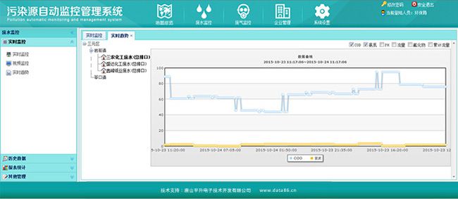 本系统是由污水排放监测点、监测中心站组成的污水监测系统。在线监测系统是一套以在线自动分析仪器为核心,运用现代传感器技术、自动测量技术、计算机应用技术以及相关专业分析软件和通讯网络所组成的综合性的在线自动监测体系,该系统可实现对企业废水和城市污水的自动采样、流量的在线监测和主要污染因子的在线监测;实时掌握企业及城市污水排放情况及污染物排放总量,监测信息传至环保局,由环保局对企业进行监督管理。与传统的污水处理技术相比,在线监测系统能够实现全程自动化运行,而减少人工的帮助,不仅节约了大量的人力物力,降低了运行成本,而且缩短了监测时间,实现了污水监测的实时化。